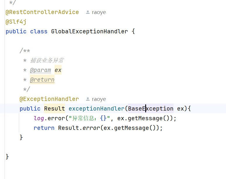 之后统一交给我们的全局异常处理器去处理
