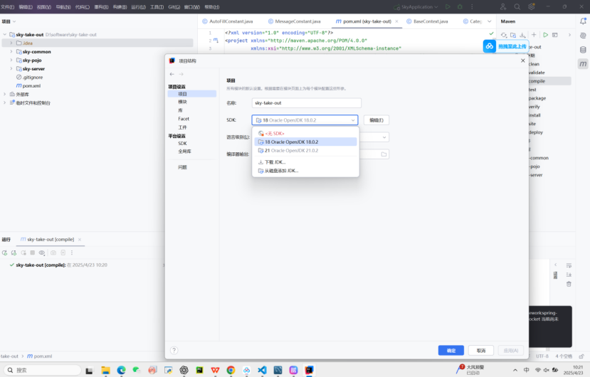 这里打开文件->项目结构,更改jdk