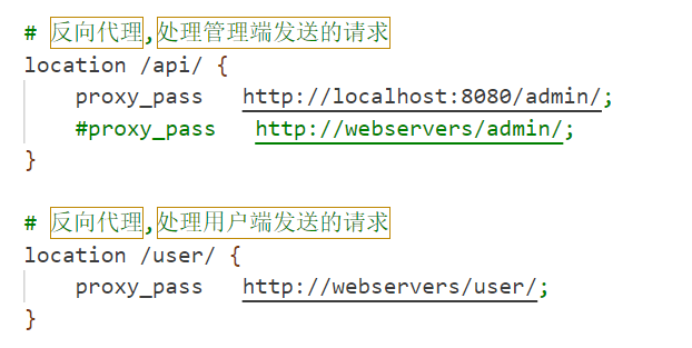 通过反向代理,来将前端发送的location/api转换成后端可以识别的路径(admin后面的如login等动态路径保持不变)