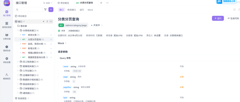 可以看到接口文档的各个信息