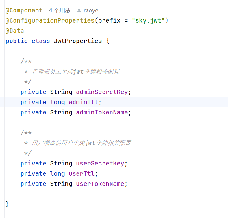 可以看到prefix = sky.jwt,与yml文件中的属性一一对应