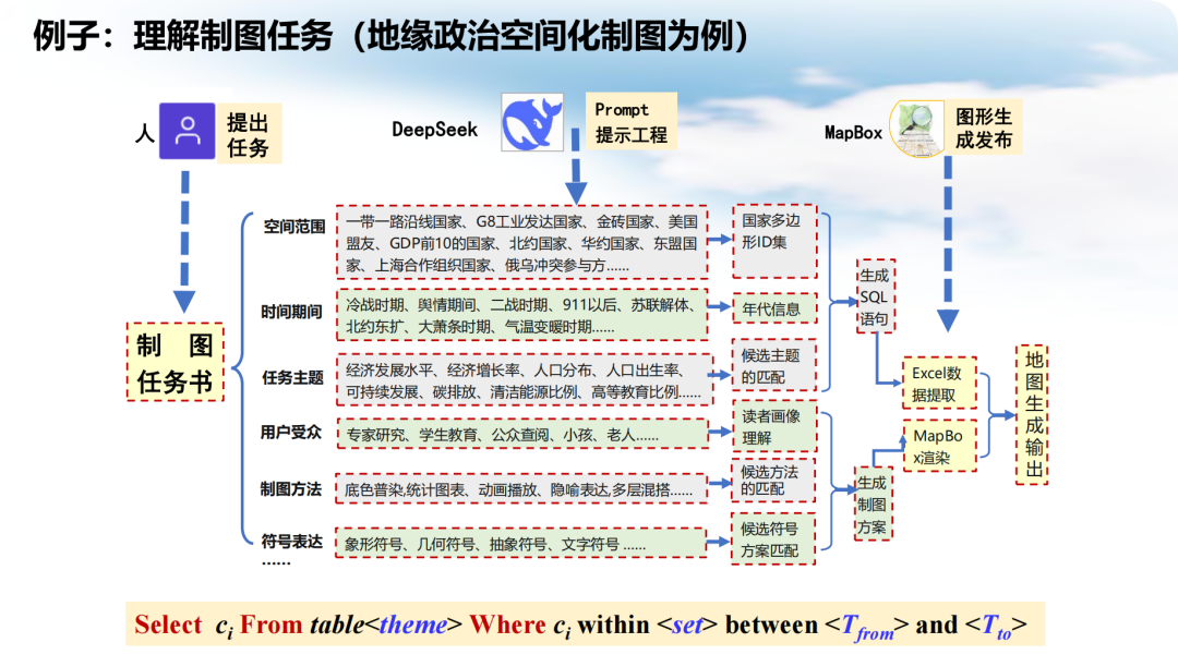 想象一个智能地图工厂:当你输入“做一张武汉旅游地图,突出地铁和景点”,系统会先让DeepSeek“读懂”你的需求。