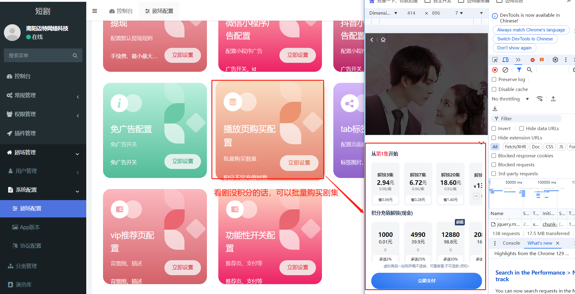 今天给大家详细拆解一下微信短剧小程序系统源码,从必须具备功能和亮点功能的角度出发,对市面上已有产品进行对比分析。抖音小程序、快手小程序、微信小程序、APP、广告解锁/付费解锁等功能是否全部都支持,是否开源!