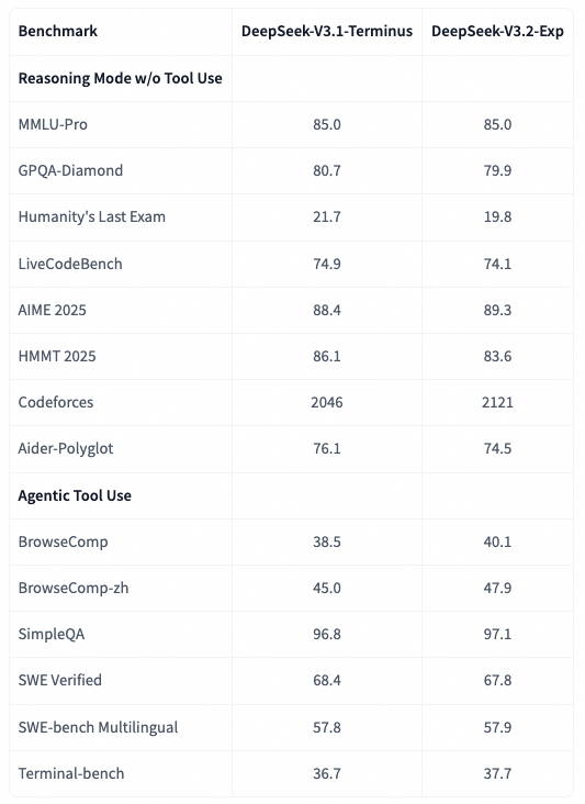 尽管DeepSeek-V3.2-Exp在长序列上的计算效率显著提升, 但并未观察到与DeepSeek-V3.1-Terminus的差距.