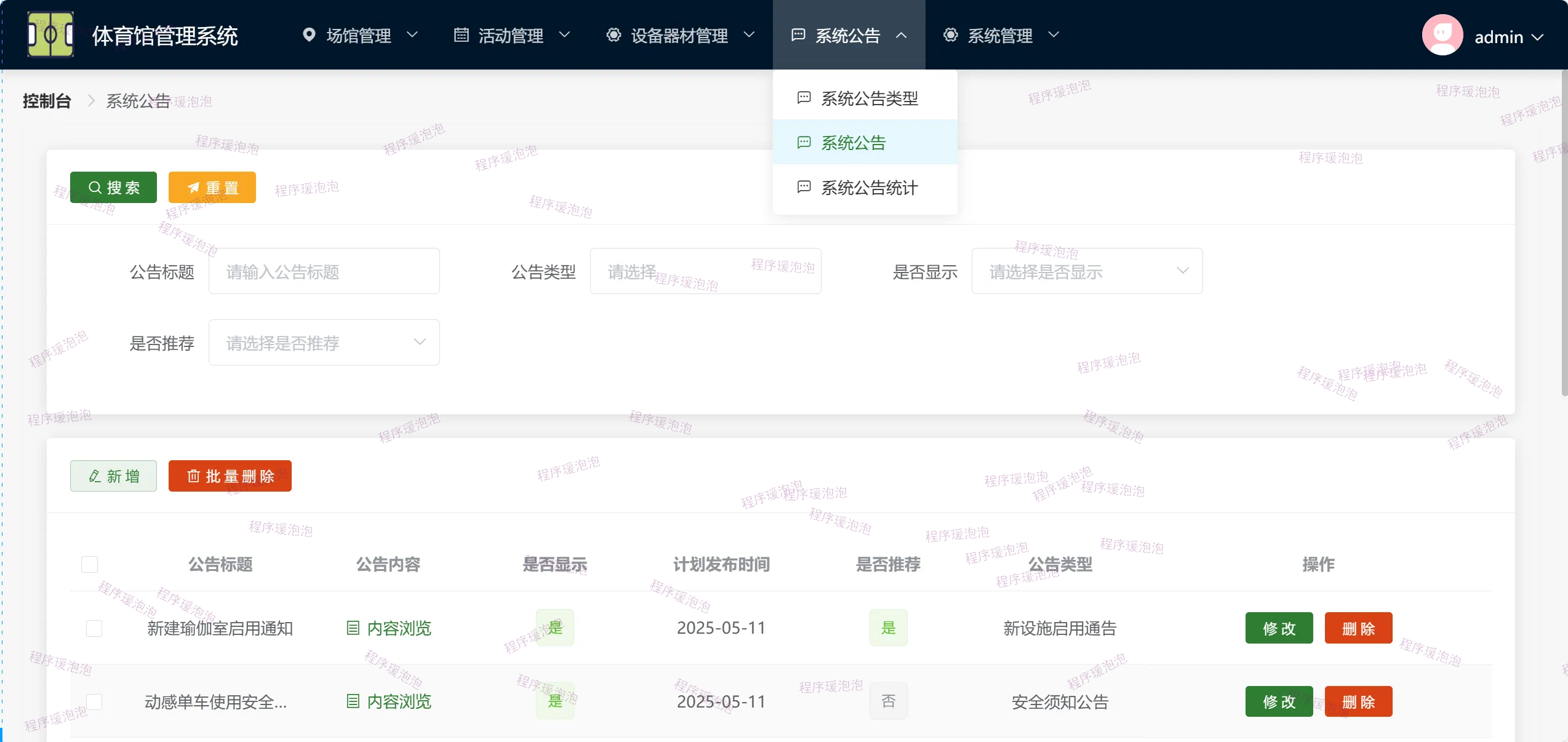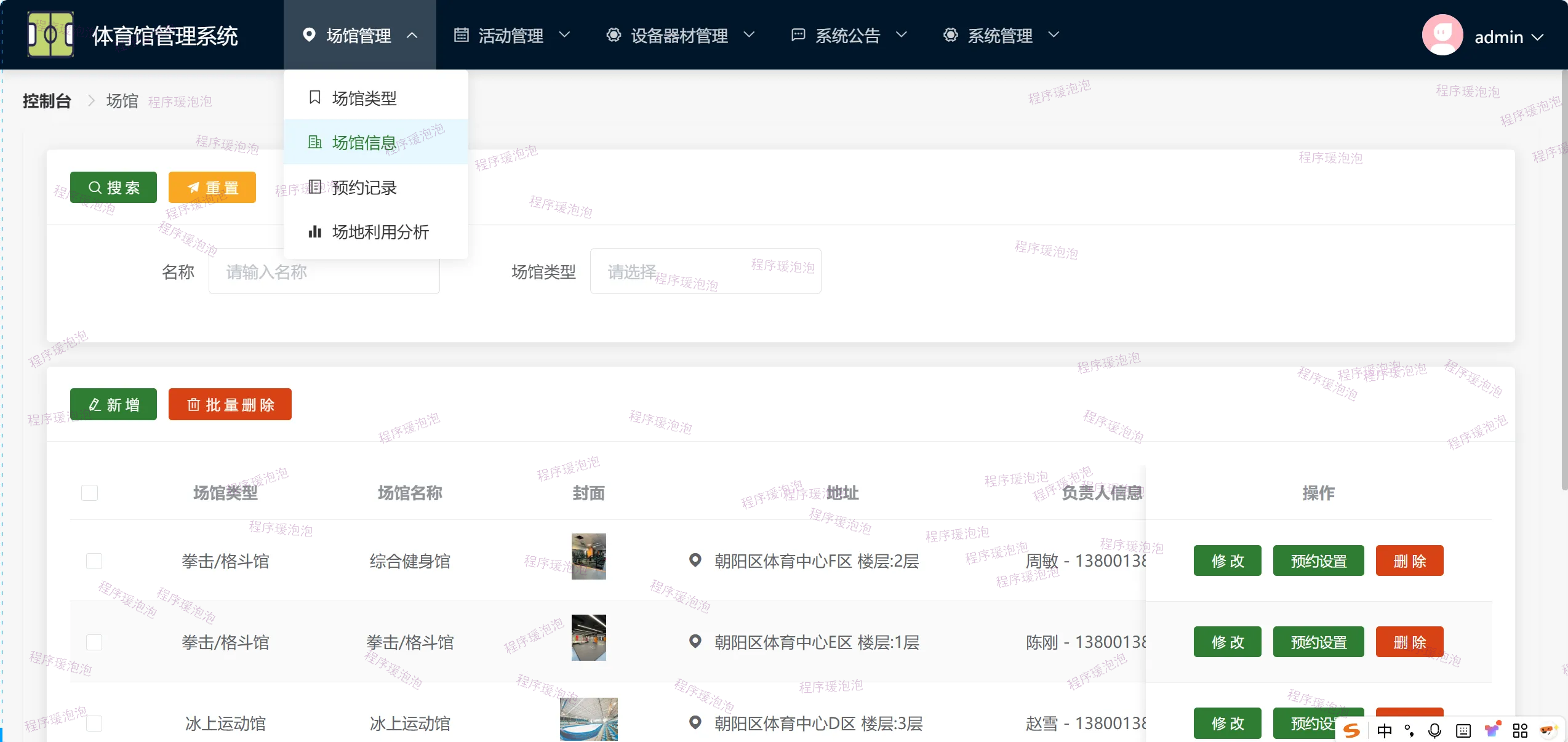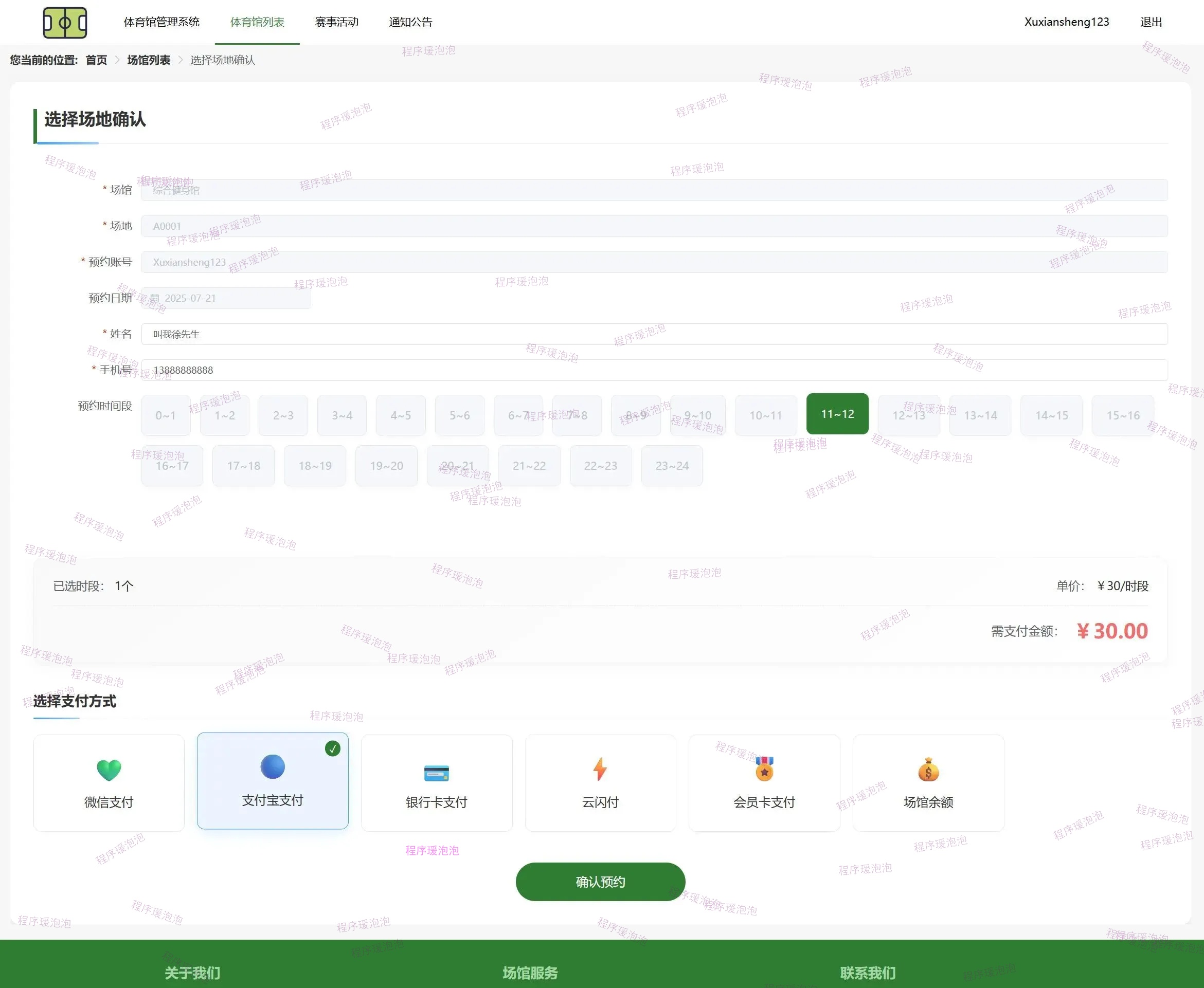 基于SpringBoot+Vue的体育馆预约管理系统(支付宝沙盒支付、腾讯地图API、协同过滤算法、可视化配置、可视化预约)