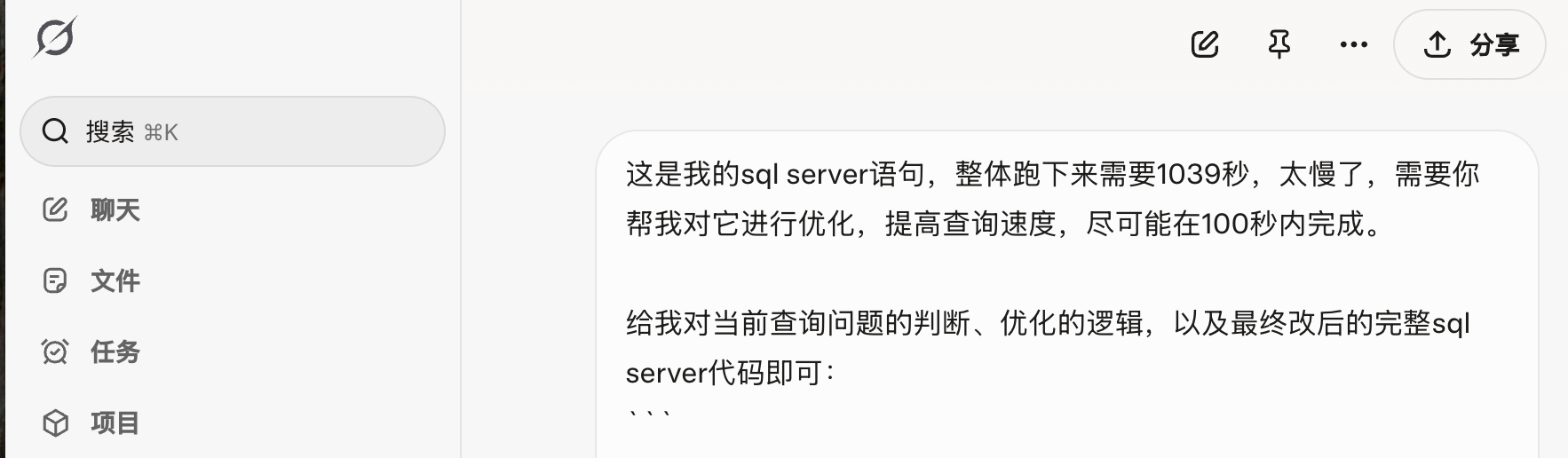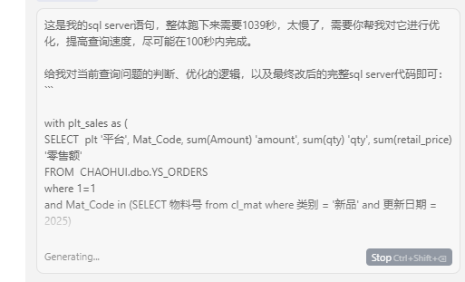 最近实在受不了了,就想用AI来优化一下,顺便看看现在这些当红炸子鸡们写SQL的能力到底怎么样。