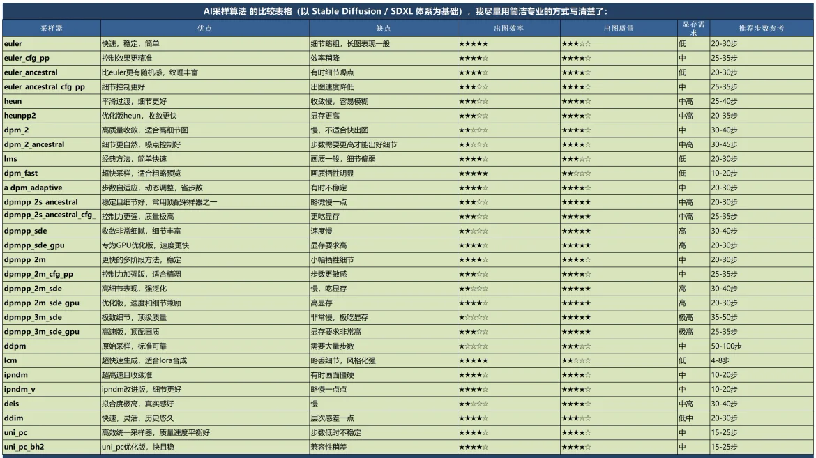 「Stable Diffusion/SDXL框架下AI采样算法性能分析与优缺点评估」——副标题:以不同采样策略在生成质量、效率与资源消耗方面的对比为核心