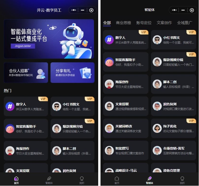 低代码封装!井云智能体封装系统让扣子智能体集成PC网站/H5/小程序三端合一