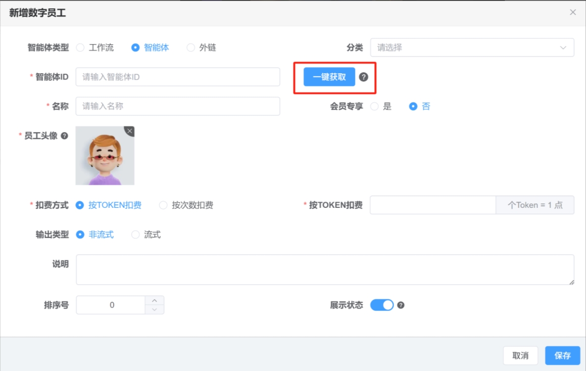 登录井云后台,在“智能体管理”模块填写扣子API密钥,即可快速同步已发布的智能体或工作流。系统支持按单个工作流设置算力消耗规则(如每次调用消耗多少Token),并可自定义名称、简介及使用引导,确保功能描述与品牌定位一致。