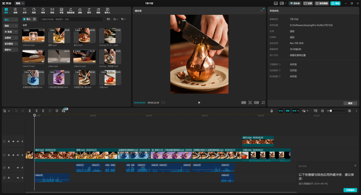 将所有素材片段导入剪映,加上配音,一个爆款视频就完成了。