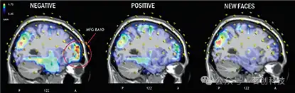 图6.在450-550ms的时间窗中,根据swLORETA分析获得的消极偏见、积极偏见和新面孔加工过程中的矢状面视图。