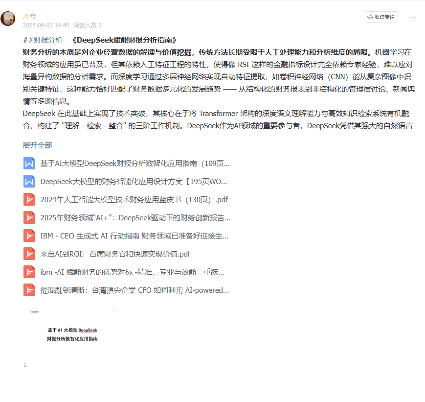 《DeepSeek赋能财报分析指南》:DeepSeek在财务上典型应用、从报表解析到风险预警、技术实现与案例分析(附相关资料)