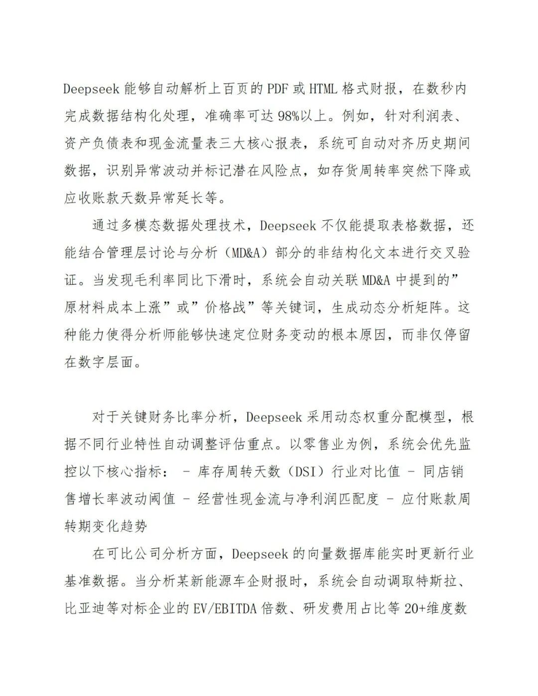基于上述能力,DeepSeek可以在多个财务分析场景中发挥重要作用: