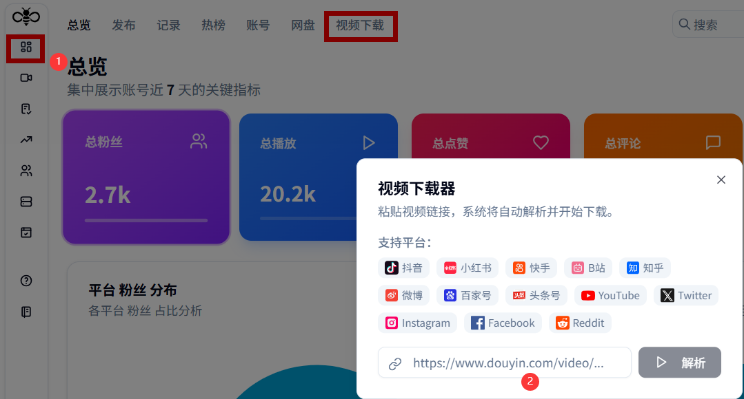 自媒体人必备!CreBee短视频矩阵工具,热点追踪+多平台分发,还支持一键解析视频下载。
