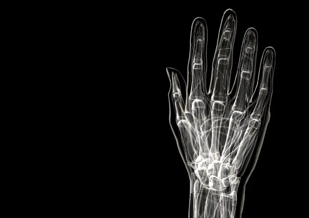 下面是是一个X射线图,可以清晰的看见手指的每一个关节。