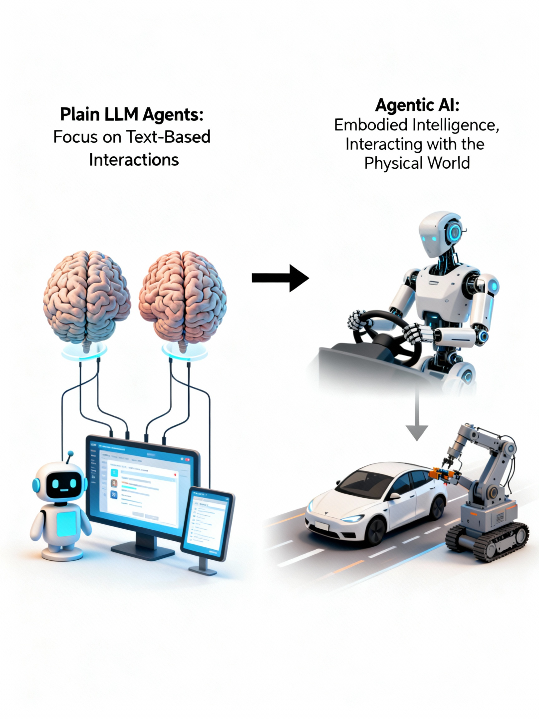在这个发展过程中逐渐发展出两个不同的概念:普通大语言模型智能体(Plain LLM Agents)和具身智能(Agentic AI)。虽然这些术语仍然在演变,但理解它们的区别对认识下一代 AI 系统的能力与潜力至关重要。