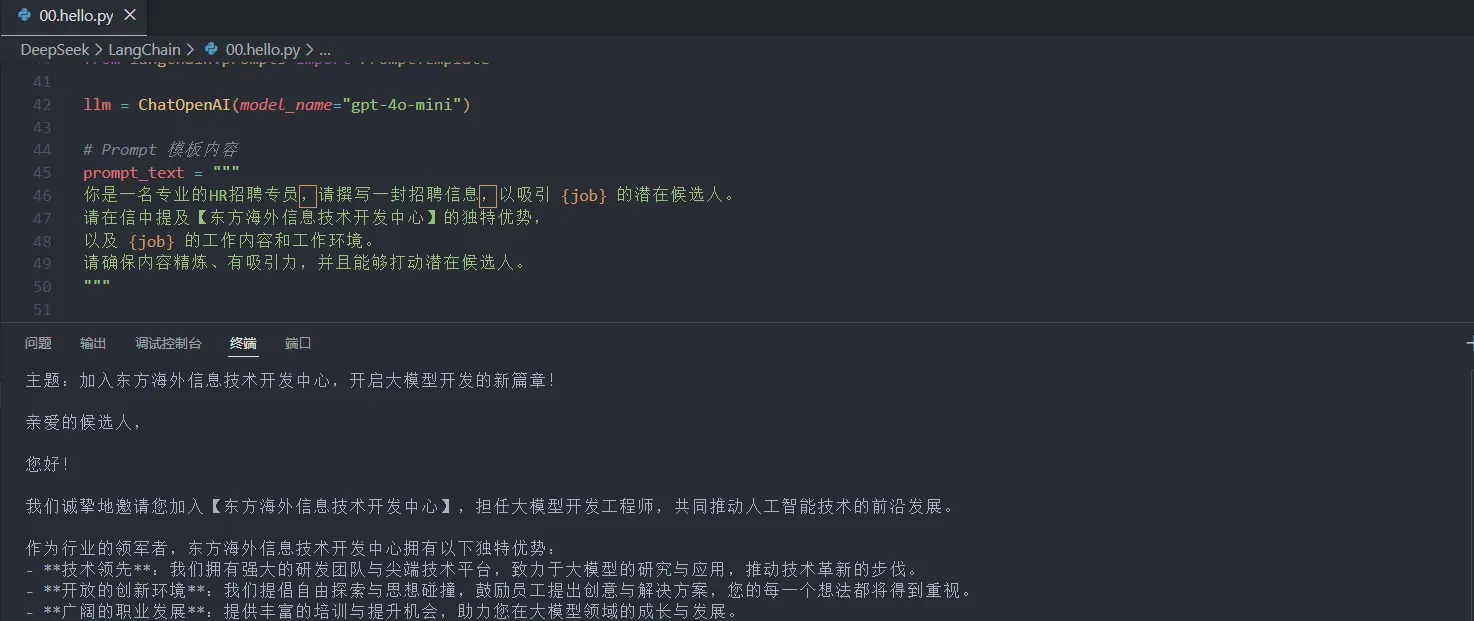 注意这里我们将参数加入到提示词之中,这样便于我们修改。