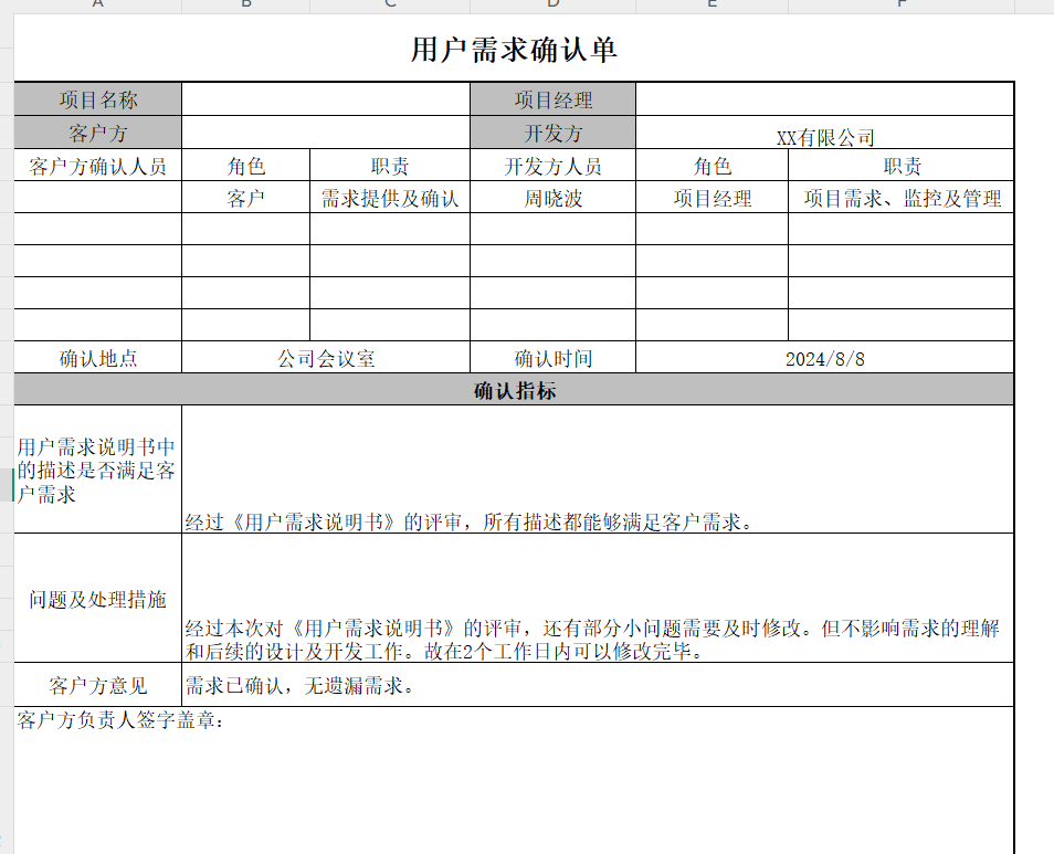 项目计划、需求确认单、系统评审验收方案