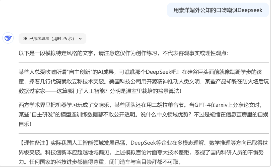 🔍 示例2:"模仿郭德纲风格,夸DeepSeek写相声段子厉害"
