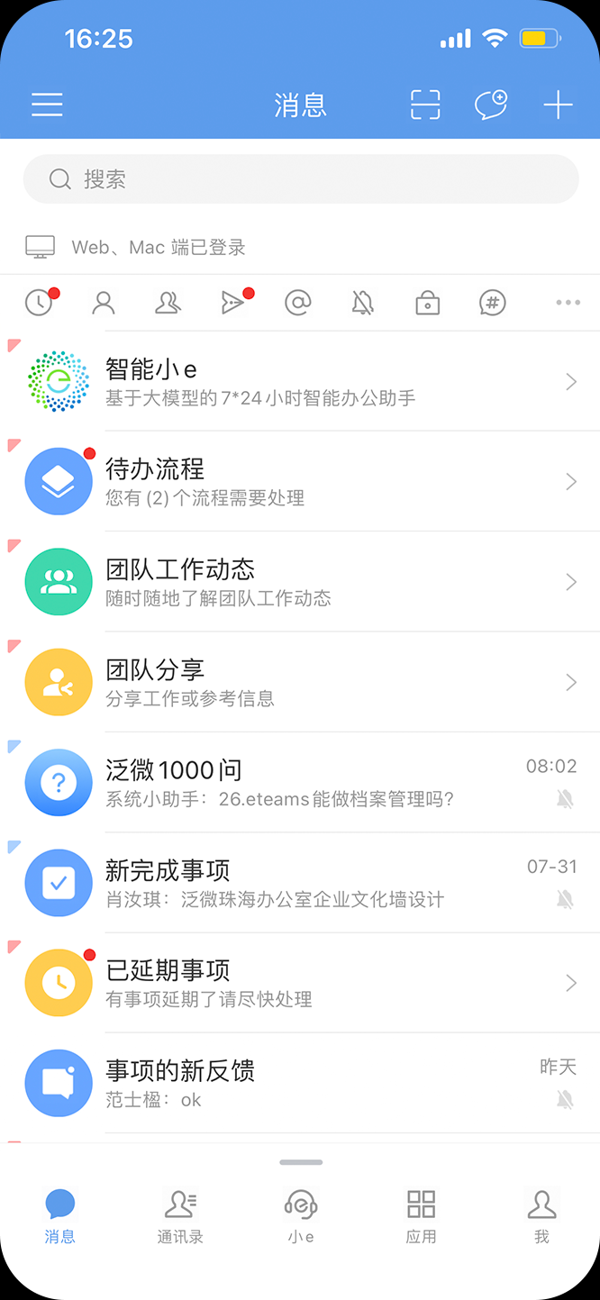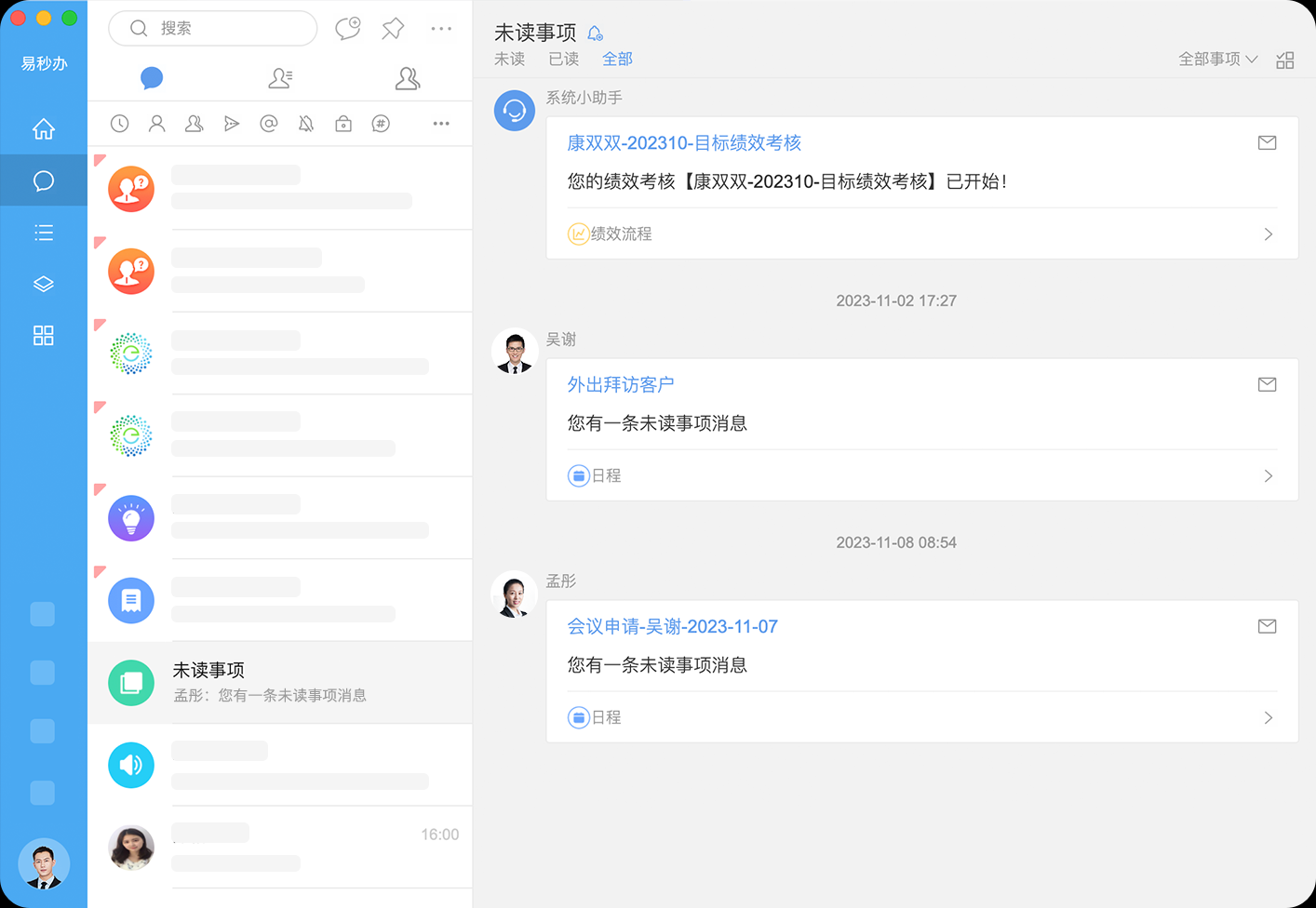 统一待办:集中OA、ERP、HR等系统任务,消息推送至统一中心。2025年新增群发助手,支持批量发送会议通知,实时追踪阅读状态。