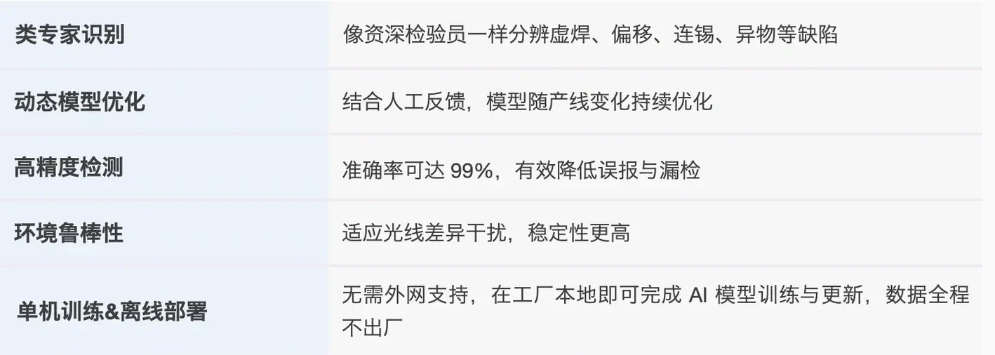 这意味着 AOI 检测机不再只是“一锤子买卖”的设备,而是具备长期商业价值的 智能平台。当 PCBA 生产线对“快、准、稳、安全”的需求日益迫切,传统 AOI 方案已难以支撑。