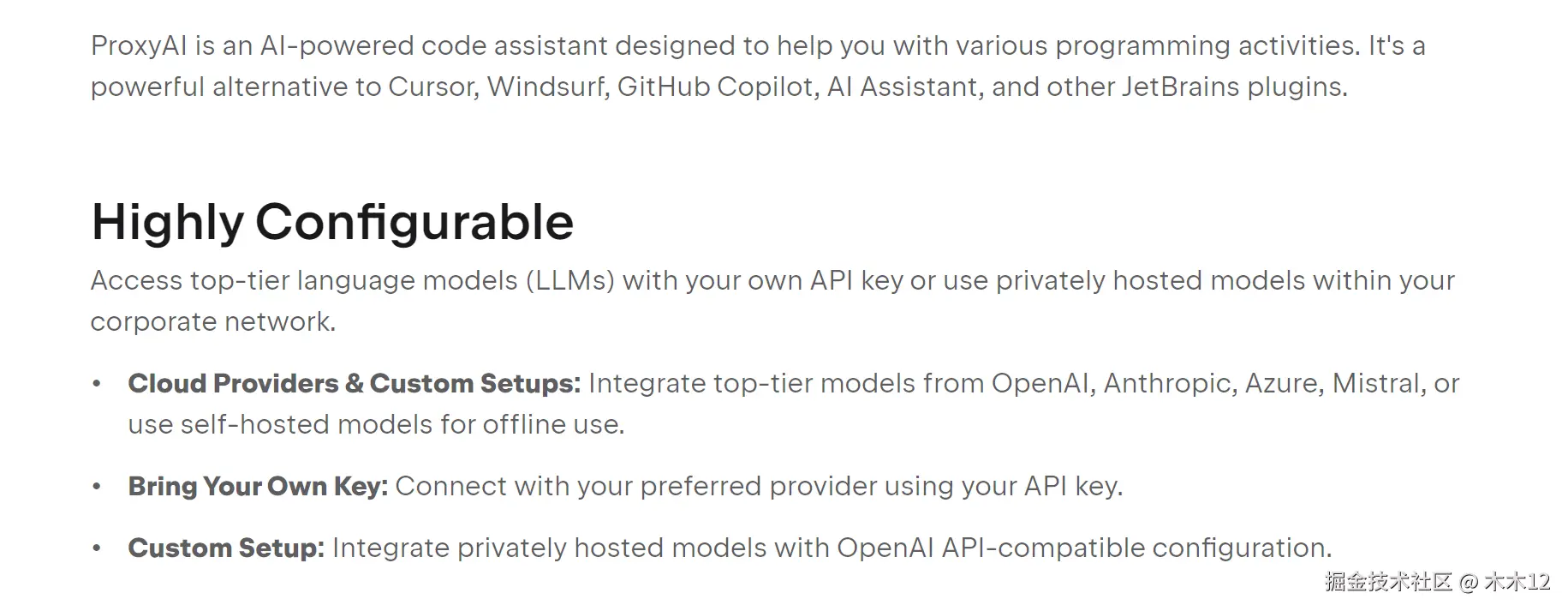 作为 Cursor、Windsurf、GitHub Copilot 及各类 JetBrains 插件 的强大替代方案,ProxyAI 提供了更优的本地化处理能力和定制化服务。