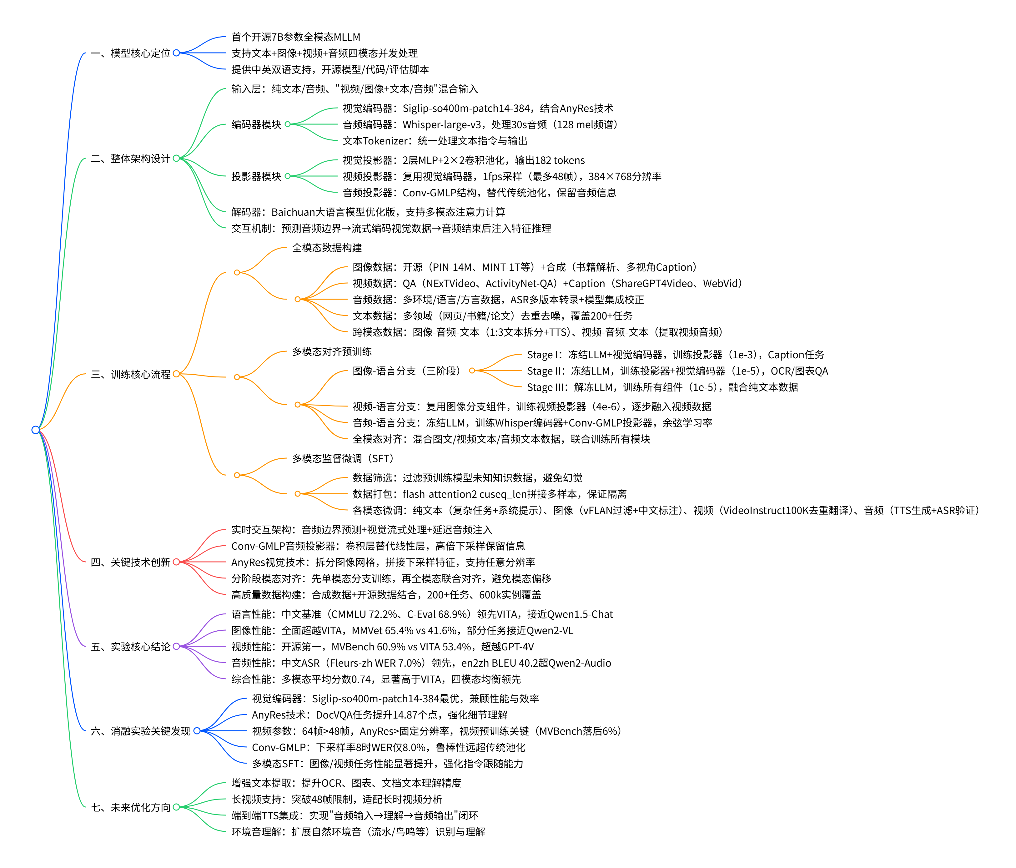 - 在 AGIEval 上超越 VITA(47.7% vs 46.2%),体现了全模态训练对语言能力的保护与提升。