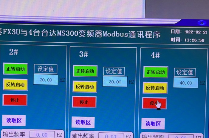 最近搞了个三菱FX3U与4台台达Ms300变频器通讯的项目,给大家分享分享。咱要实现的功能就是通过三菱FX3U的PLC与4台台达ms300变频器进行modbus通讯,同时在触摸屏上设置每台变频器的频率、监控输出频率和电压,还能控制启停以及正反转。这一通操作下来,已经测试运行可行啦,而且程序带注释,接线方式和参数设置也都有,话不多说,开整。
