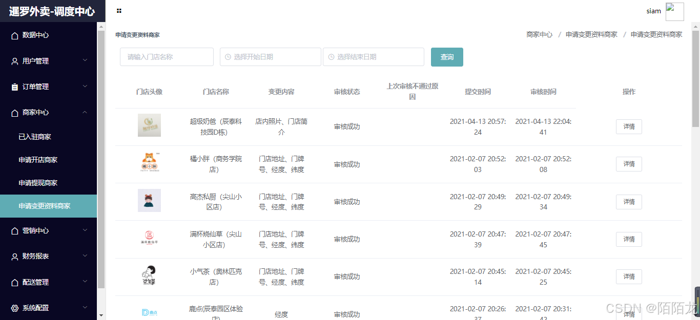 ├── 移动端模块 // 覆盖用户、商家、骑手全角色 │ ├── uniapp-siam-user // 用户端微信小程序(下单、支付、会员管理) │ ├── uniapp-siam-shop // 商家端微信小程序(接单、门店管理) │ └── uniapp-siam-rider // 骑手端微信小程序(抢单、配送跟踪) ├── Web管理端模块 // 后台管理中枢 │ ├── vue-siam-shop // 商家管理后台(商品、订单、库存管理) │ └── vue-siam-admin // 超管调度后台(多门店管控、数据统计) ├── 后端服务模块 // 业务逻辑核心 │ ├── siam-system // 主Web接口服务(端口9200) │ ├── siam-monitor // 服务监控模块(端口9100) │ ├── siam-generator // 代码生成工具(快速生成CRUD接口) │ ├── siam-common // 通用工具模块(封装常用工具类) │ └── siam-weixin // 微信生态模块(支付、小程序对接) └── pom.xml // 父工程(统一依赖管理)