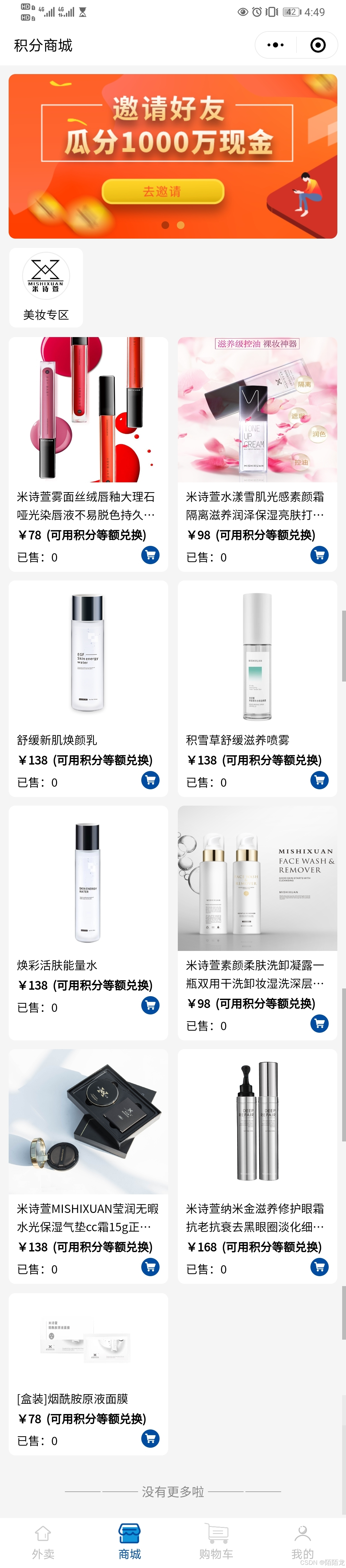 积分商城:用户可通过下单、签到获取积分,积分可兑换商品或抵扣订单金额,提升用户留存;