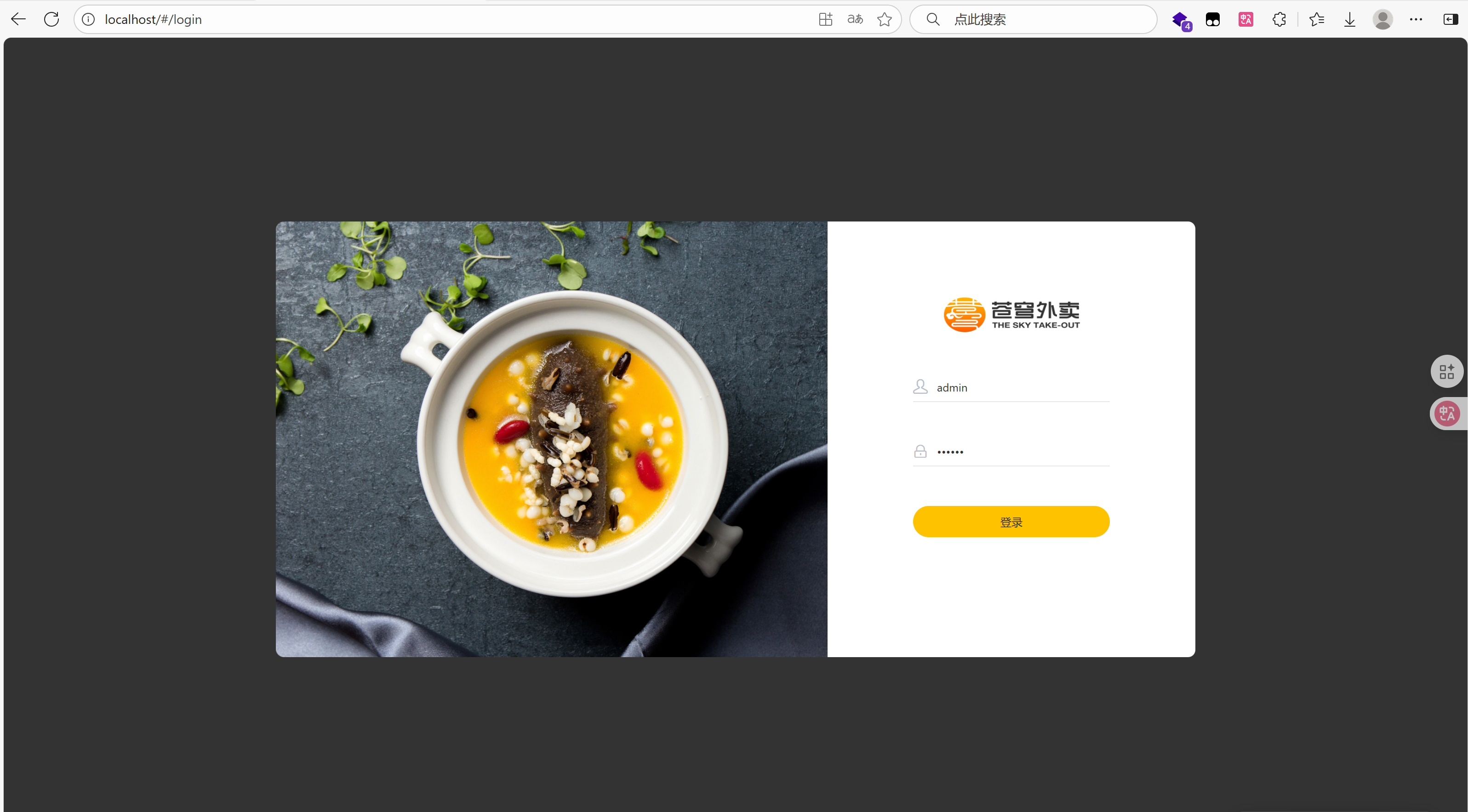 双击点击nginx.exe,成功运行后,在浏览器链接搜索框中输入指定网址:http://localhost:80即可看到该项目登录界面了