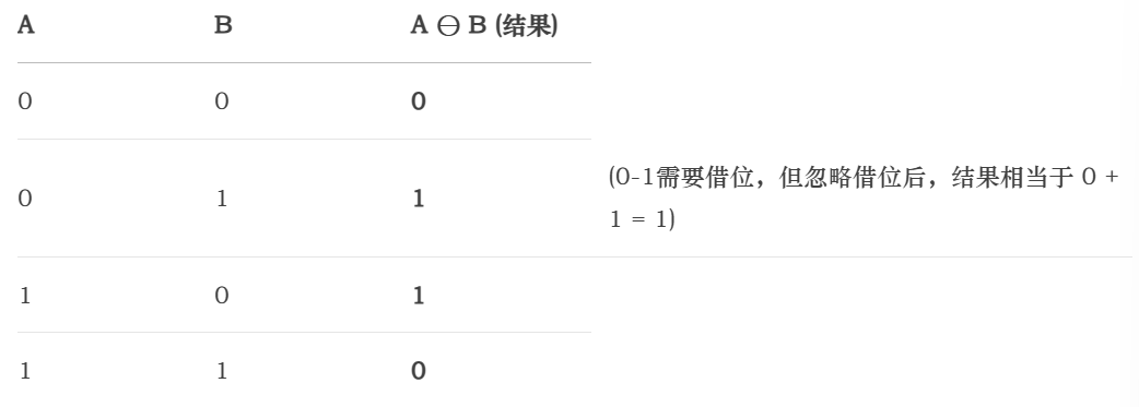所以,A ⊖ B 等价于 A ⊕ B。这个特性在错误检测和校正编码中非常有用。