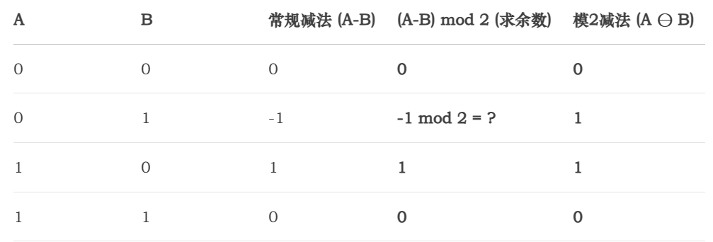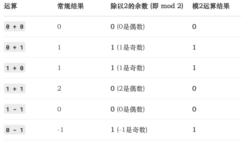 因此,模2运算的结果也只在集合 {0, 1} 中。