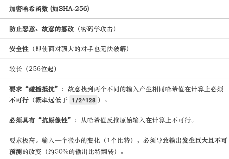 加密哈希函数是复杂、重量级的密码学原语,其安全性建立在计算复杂性的理论基础上,旨在对抗智能对手的主动攻击。
