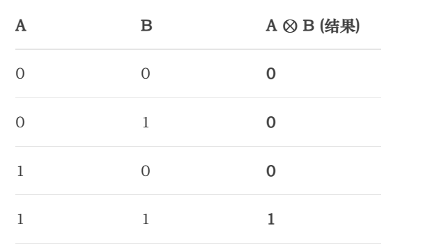 模2乘法与逻辑“与” (AND) 操作完全相同。规则和普通乘法类似,但最后相加时使用模2加法。