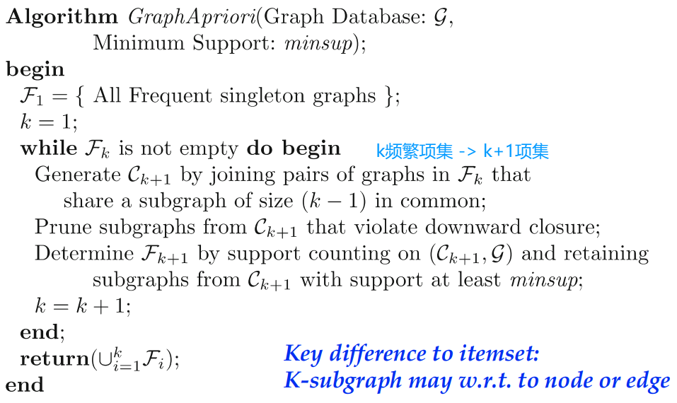 剪枝:检查候选k-子图的所有 (k-1)-子图是否都是频繁的。