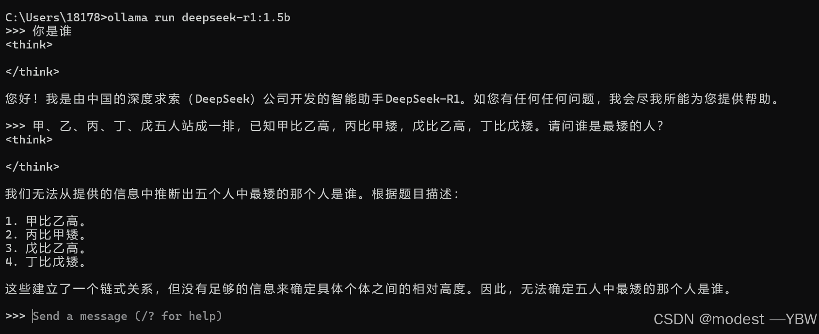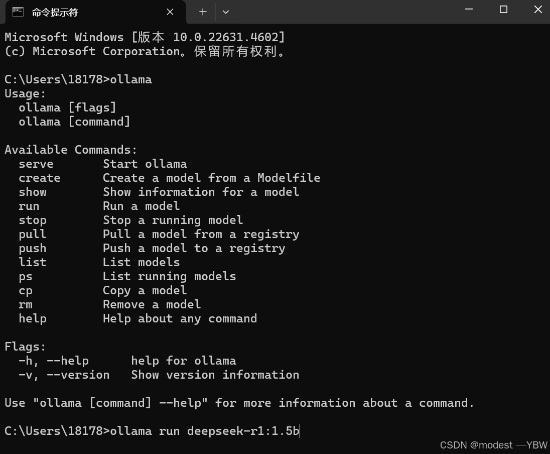 命令:ollama run deepseek-r1:1.5b