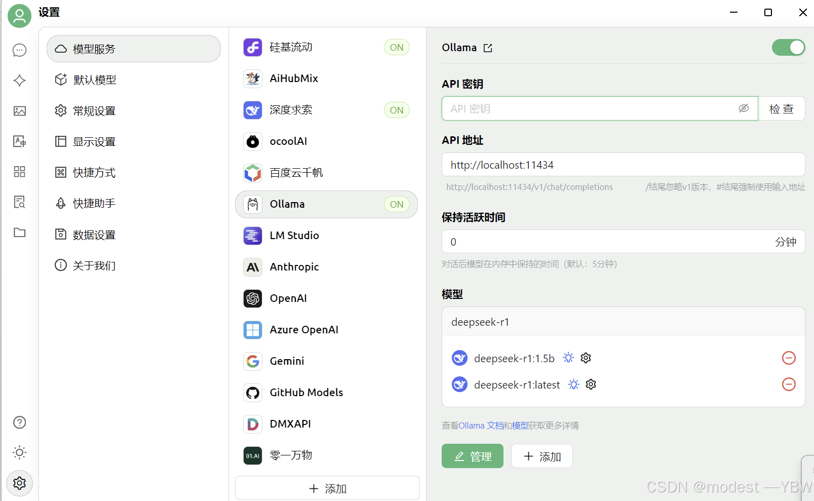 安装完之后,点击设置——ollama——管理——添加本地的模型