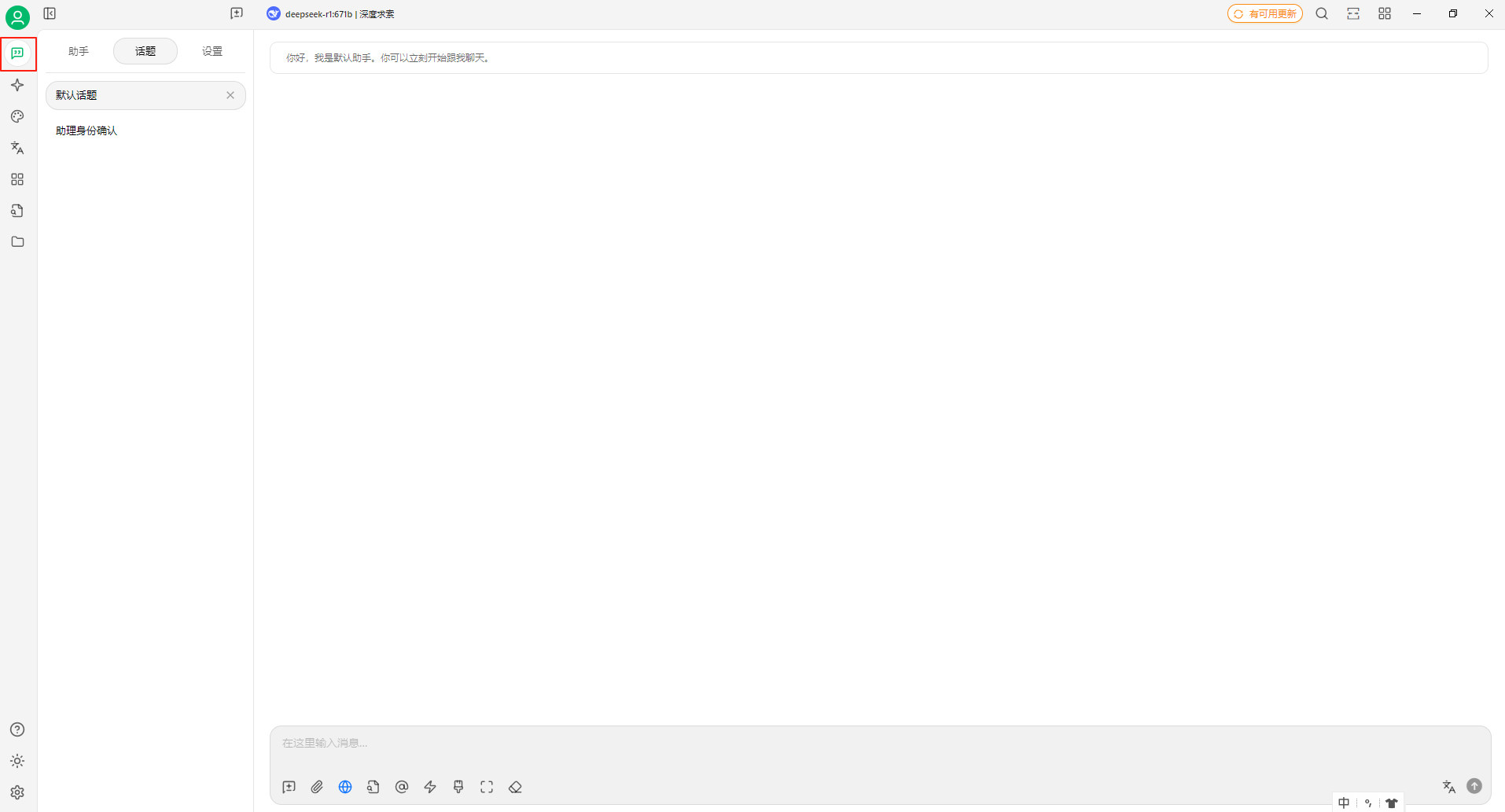 配置完DeepSeek,接下来点击左上角的对话按钮,开启对话。
