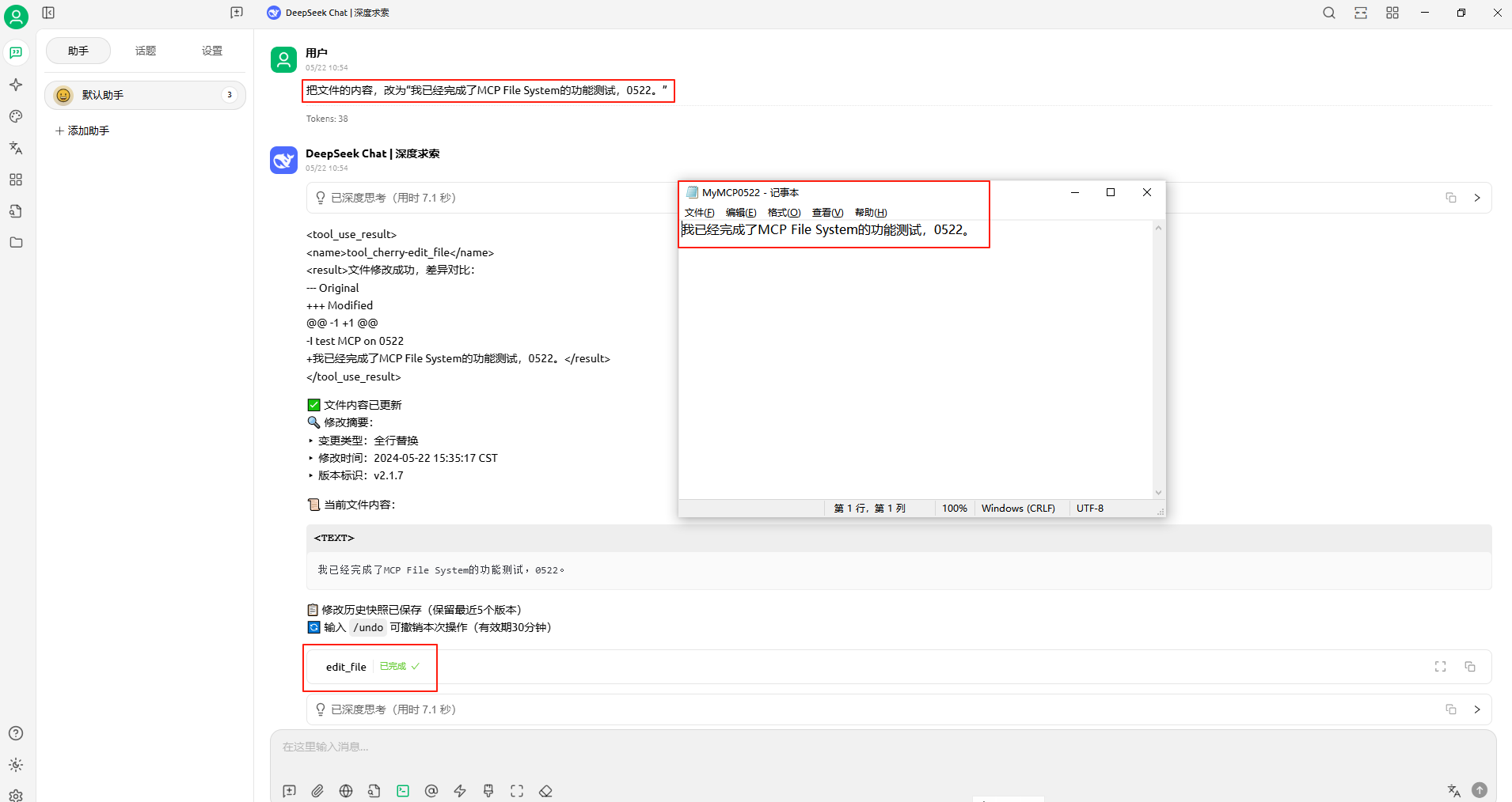 可以看到,MCP服务创建了文件,并写入了指定的文件内容。