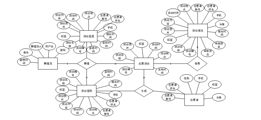 图4-8社区志愿者服务系统设计与实现的总体E-R图