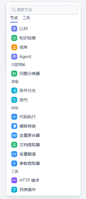 Dify提供了很多官方的工具和插件,比如LLM(大模型)、代码执行(Python)等,能直接使用。