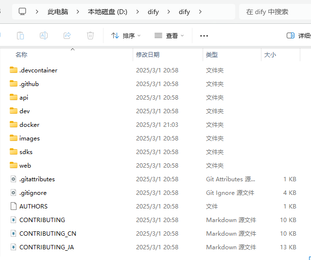克隆好后,本地电脑就会出现Dify 1.0.0的所有源码。