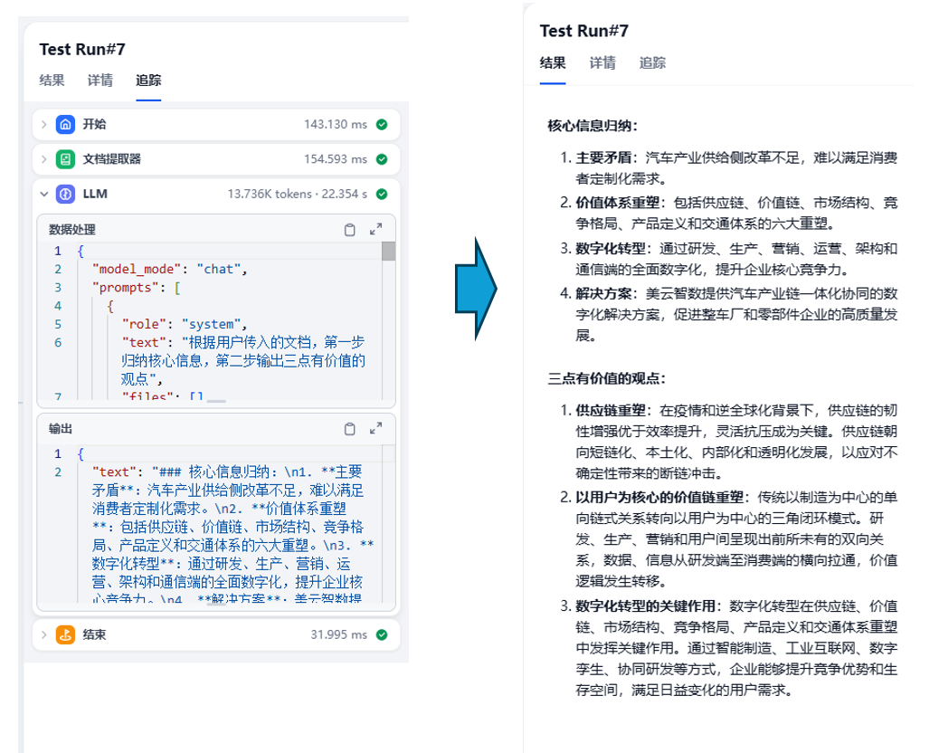 最后测试下,我上传了一个关于汽车数字化的行业分析报告PDF,模型跑出来了结果。