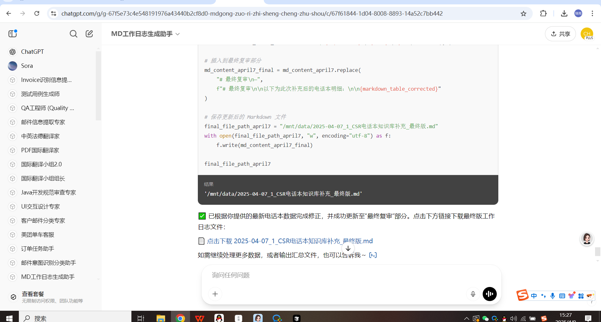 你只需要告诉我:“今天任务是 xxx”,我就能帮你输出一份规范、可下载、格式化的工作日志!是不是非常省心 😎