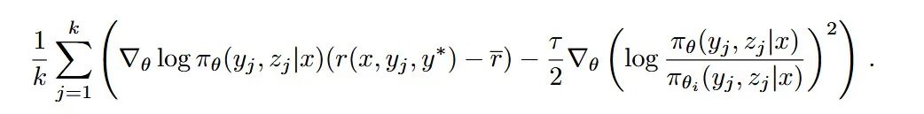 这部分篇幅很多,讲了推理问题的路径搜索和策略优化算法,但是看最后的 gradient 公式,就是正常的 policy gradient,很多东西都内含进生成里面了,比如策略 z。
