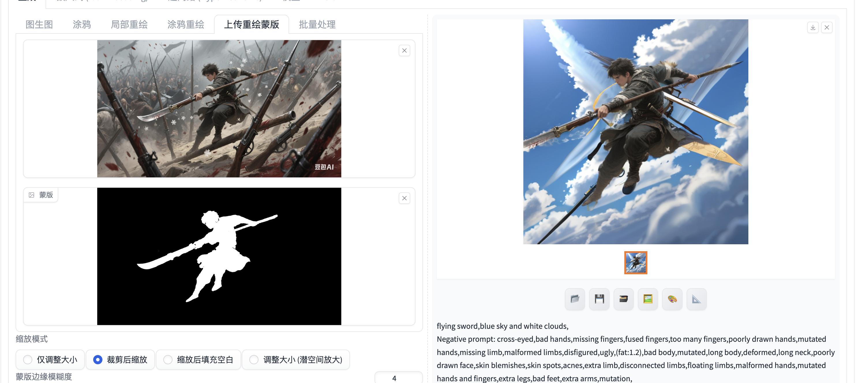 选择仅蒙版,获取蒙版就可以发送模板到图生图区域进行创作了。