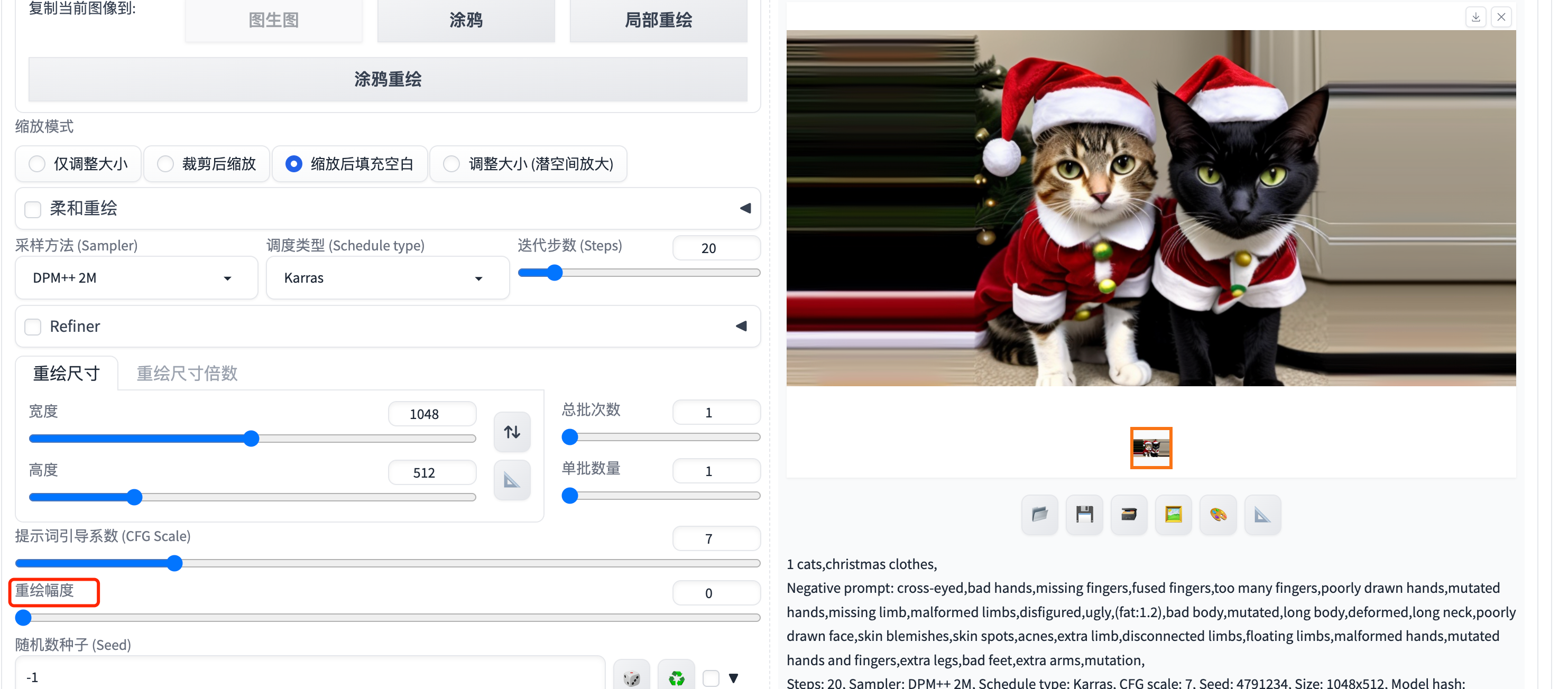 重绘模式:重绘模板内容 就是 涂色部分重绘。