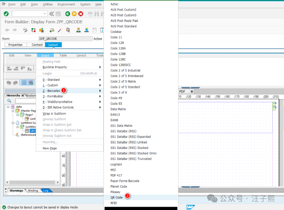 方法1 需要开发人员手动编写 ABAP 代码,在 SAPGUI 里渲染并生成包含二维码的 PDF.