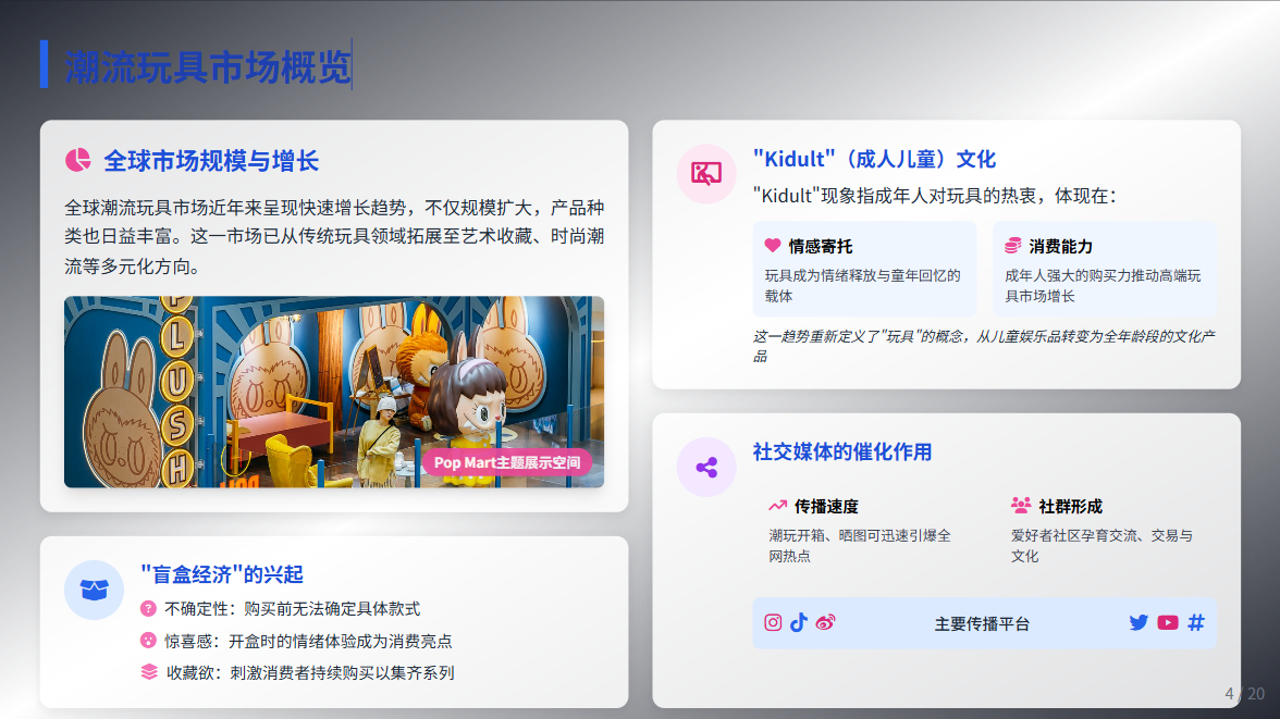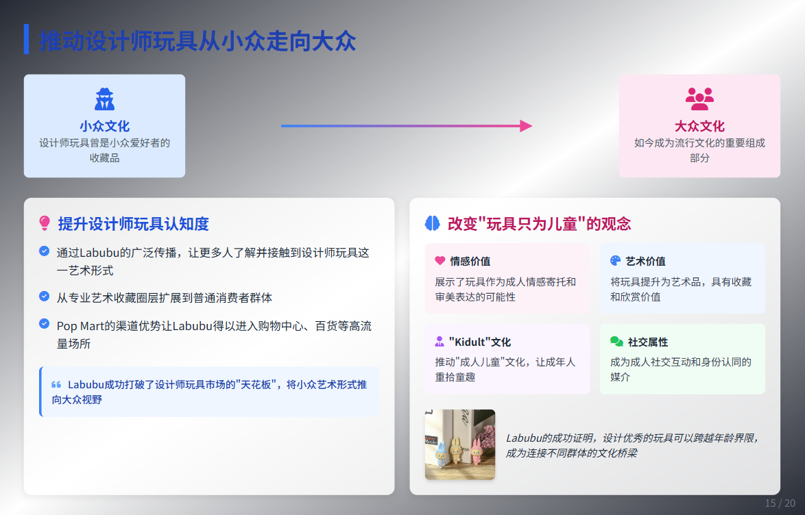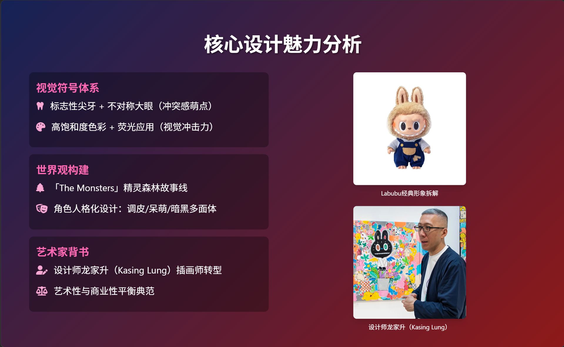 提示词:我需要做一个内容为Labubu为何火爆全球的PPT,请帮我生成一份PPT大纲,并且以markdown的形式输出给我。